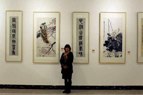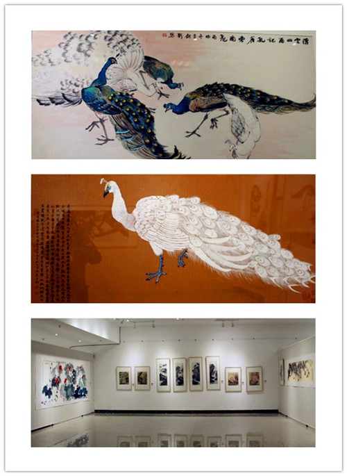 夫妻倆同樣的志趣愛好,實屬難得。他們會經(jīng)常合作創(chuàng)作同一幅作品,畫里能感覺到夫妻的恩愛,同時表現(xiàn)出了他們幸福美滿的生活。比如共同創(chuàng)造的作品有《雙壽圖》、《紫氣東來》。這樣才是真正比翼雙飛的夫妻,參觀者無一例外的投來贊許的目光。
