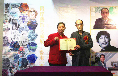 9日下午,在香港九龍尖沙咀梳士巴利道十號香港文化中心四樓展覽廳舉行開幕式,畫家馬培童做為藝術家代表在開幕式上講話。參展的藝術家們還進行了現(xiàn)場揮毫表演交流,在交流期間,書畫名家楊培文被馬培童氣勢磅礴的焦墨山水畫吸引,連聲稱呼:“我第一次看您畫焦墨山水畫,真的把我吸引住了,您‘以書入畫’,縱情揮灑,潑墨酣暢,收放自如,把寫意精神發(fā)揮得淋漓盡致。真是令我大開眼界!”,毫不猶豫地以2萬元港幣收藏。香港電視臺,深圳電視臺、香港美術報等多家媒體紛紛對馬培童老師進行了采訪。