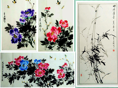 牡丹寓意繁榮富貴的象征,牡丹自然也成了朱安琳繪畫作品的首選對(duì)象;ㄩ_富貴的牡丹,寄托出美好的心愿與祝福,給人以舒暢的視覺享受。從朱安琳的畫中可以感受到他熱愛生活,對(duì)美好事物的追求和向往。