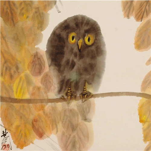 林風(fēng)眠 貓頭鷹 45×45cm  1960年代 中華藝術(shù)宮藏