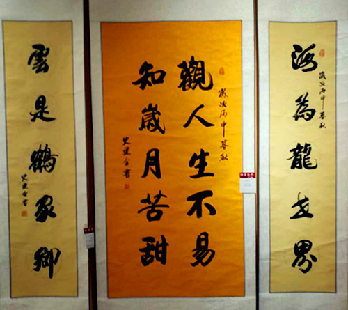 我國著名書法家史建全應(yīng)邀參加開幕式,并展出作品十二幅,沉穩(wěn)厚實(shí),大氣磅礴的書法作品為此次巡展增光添彩,受到廣大觀展書畫愛好者、收藏家、舉辦單位高度評(píng)價(jià),一致稱贊。近年來,史建全一直堅(jiān)持不懈,不遺余力地通過參加書畫展、公益活動(dòng)、文化到基層、書畫到學(xué)校等各種形式展示徐州當(dāng)代書畫的創(chuàng)作成果,推動(dòng)中國徐州書畫創(chuàng)作新發(fā)展,推廣徐州書畫文化,打造城市特色文化品牌,竭盡全力地為廣大書畫愛好者和市民奉獻(xiàn)更多高質(zhì)量的書法作品。