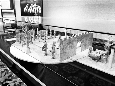 中國青年報·中青在線記者注意到,在該展覽的眾多展品中,最引人爭議的是兩套“三星堆時期”的玉器。其中一套為“三星堆立體玉兵陣”,該藏品長313厘米,寬188厘米,“全器由大小100余件構(gòu)件組合而成。展示了戰(zhàn)爭中守城一方和攻城一方”。