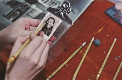 盡管有繪畫的底子,但陶通一開始學(xué)習(xí)炭精畫感覺難度不小。“炭精畫不是像用鉛筆那樣的硬筆作畫,而是用各種自制的毛筆、棉花等工具在紙上來回擦拭進(jìn)行創(chuàng)作,水平高的基本不用橡皮。”對(duì)于初學(xué)者來說,畫人肯定要用九宮格,把所要畫的照片放在一個(gè)九宮格上,空白紙放在另外一個(gè)九宮格上,按同比例對(duì)原照片進(jìn)行擴(kuò)大。陶通說,由于炭精畫的學(xué)習(xí)有一定難度,幾個(gè)跟老師葉耀泉學(xué)習(xí)的,只有陶通堅(jiān)持了下來。