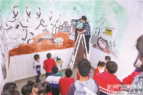傳統(tǒng)文化壁畫 浸潤校園師生