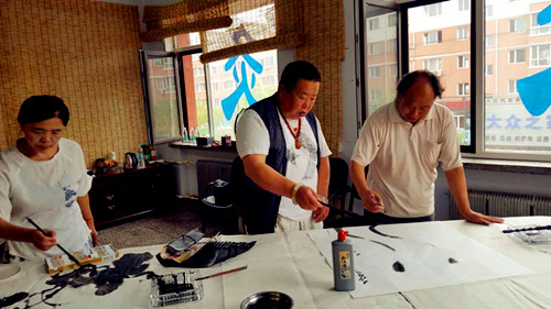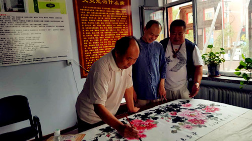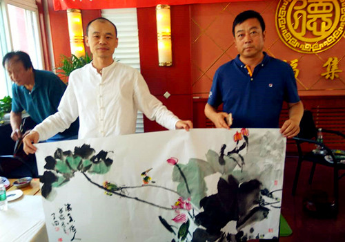 劉涌總裁對(duì)藝術(shù)家們能夠走進(jìn)遼寧葫蘆島,為企業(yè)送文化精神食糧表示崇高的敬意和由衷的感謝。 隨后,書畫家們揮毫潑墨,以筆會(huì)友,盡展才藝;顒(dòng)現(xiàn)場(chǎng)氛圍濃厚,書香氣味濃烈,各位書畫家們的精心力作,受到與會(huì)人員交口稱贊,拍手叫絕。這批藝術(shù)水準(zhǔn)較高、極具收藏價(jià)值的佳品杰作將贈(zèng)送給葫蘆島德福堂集團(tuán)留存。