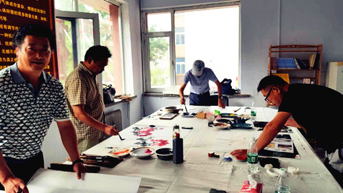 中國(guó)黃淮網(wǎng)沈陽628訊(劉德明 劉晶)627,由中國(guó)黃淮網(wǎng)總編、黃淮書畫院院長(zhǎng)王艷女士,徐州市美協(xié)副主席、黃淮書畫院名譽(yù)院長(zhǎng)、著名花鳥畫家尹成先生帶隊(duì)的赴遼藝術(shù)交流小組在遼寧省書畫協(xié)會(huì)陪同下,走進(jìn)葫蘆島福德堂中醫(yī)院開展文化行活動(dòng)。