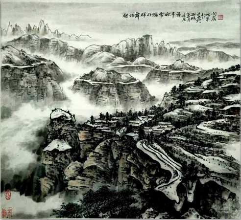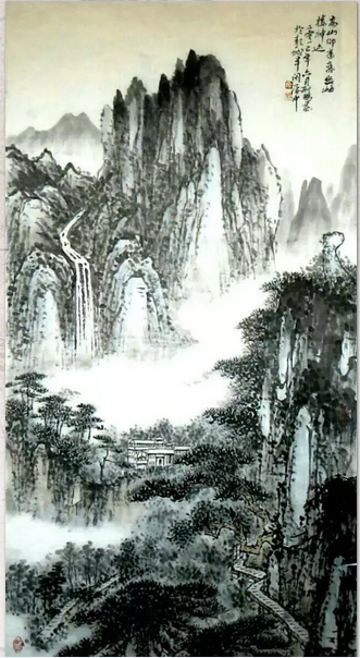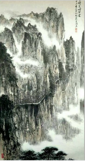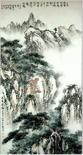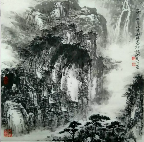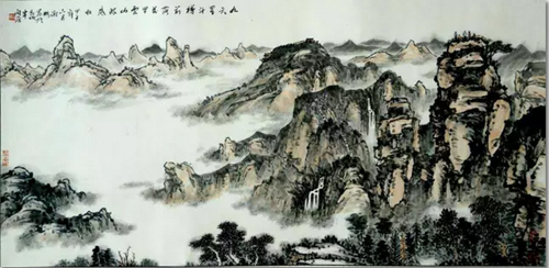 畫家張錫杰說過:“一個(gè)畫家必須站在宏觀的高度看世界,要有宇宙觀的意識,方能畫出大氣、超凡的佳作來。畫得生機(jī)、豐盛、完滿、節(jié)奏、韻律、神氣,是為大美! ”欣賞謝鵬的山水畫,我們可以看到他正在向這條道路不斷探索前行。大山之雄偉,松石之奇俏,云海之洶涌浩瀚......滿紙充溢著一種撲面而來的雅逸之氣,靈性與活力讓山水不死。畫中灌注的,除了大自然的生氣,還有山水畫家自己的生命力。