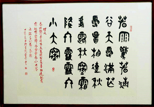 【作品】夏先生擅長(zhǎng)篆、隸、行、草書體,更兼榜書大字融會(huì)貫通,形成自己獨(dú)特的書法風(fēng)格。善畫水墨蘭草、墨竹等,1997年4月中國(guó)書畫家精品展榮獲“金獎(jiǎng)”,2002年中國(guó)書畫大型研討會(huì)上榮獲“銀獎(jiǎng)”,2009年10月毛澤東詩(shī)詞書法大賽榮獲“特別金獎(jiǎng)”,1996年被國(guó)家文化部、人事部授予《跨世紀(jì)人才》稱號(hào),作品入編《中國(guó)書畫名家大辭典》、《國(guó)際名人錄》、《中華名人書畫經(jīng)典》、《中、日、韓書畫大賽獲獎(jiǎng)作品集》。