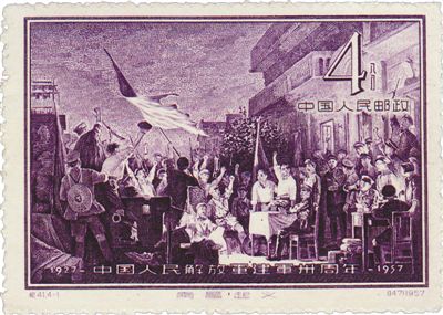 解放戰(zhàn)爭期間,人民軍隊以“中國人民解放軍”的光榮稱謂,所向披靡,解放全中國,完成了“南昌起義”所奠基的歷史使命。僅華東人民郵政,1949年3月發(fā)行了江淮解放紀念郵票;5月發(fā)行了淮海戰(zhàn)役勝利紀念郵票,以及南京、上海解放紀念郵票。
