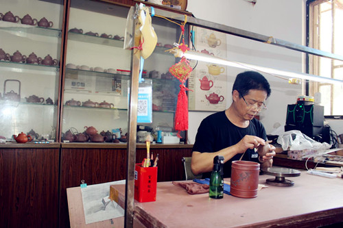 中國黃淮網(wǎng)訊(宋梅)五月中旬,筆者有幸在宜興走訪了手工紫砂壺制作張才良師傅。說到紫砂壺總有人會問是不是手工的,其實紫砂壺到目前為止都是手工制作的。但是手工制作分全手工和半手工兩種技藝手法,而傳世經(jīng)典名家精品一般直屬前者。