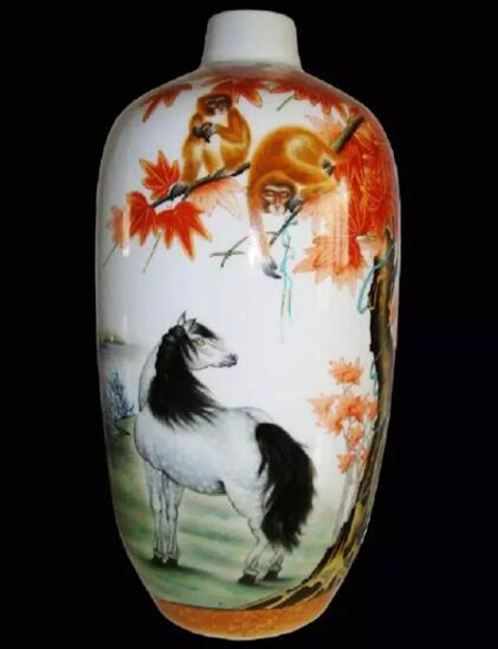 為一馬上一蜂一猴;“猴”象征“侯”,即古時(shí)高官。以馬上封(蜂)候(猴)的寓意來(lái)表達(dá)一種立即就要升騰的愿望。