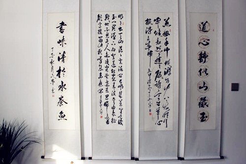 王民學(xué)先生的書法作品通過極簡(jiǎn)略的筆墨、精粹的線條,表現(xiàn)了對(duì)萬物的情思。其線條的起伏、粗細(xì)、曲直、干濕、輕柔、光潤(rùn)的不同變化可以感覺的他的品學(xué)德性。書法需要情境,需要心境,古時(shí)的書法家如此,現(xiàn)代亦如此。清代文論家劉熙載說:“書,如也,如其學(xué),如其才,如其志。總之,曰如其人而已。”藝術(shù)是心靈的窗子,高尚的品質(zhì)一定會(huì)顯露在筆端。