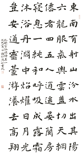 余生于庚戌,今歲為戊戌,已過四個輪回,正為本命之年。戌年新春過去,余點檢人生,覃思藝事,嘆韶華之易逝,悲藝業(yè)之無成?嗑抗始,墨士不覺白首;窮探雅韻,書生只愧青春。余潛心齋中三月,得百余件書作,再加揀選,只得五十余件。便思作一小展,一則以之為本命年紀(jì)念,亦為余近期學(xué)書之小結(jié);二則以此示之于諸師友同道,冀能為余指點迷津,如有偏差,以期識迷途而知返也。