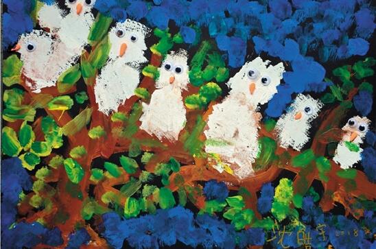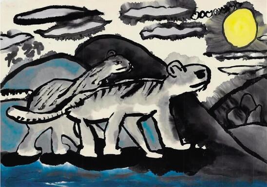 孩子們的水墨畫,也是這樣,常常讓我分外驚奇。有種理論說,孩子們畫畫沒有技巧,也不需要他們講究技巧。以我觀察,不是這樣。那些打動(dòng)了許多成人,打動(dòng)了許多藝術(shù)大師的兒童畫,都有高超技巧。不過這技巧不是訓(xùn)練所得,而是兒童的生命狀態(tài)所致。孩子畫畫,以此體驗(yàn)生命,理解世界,發(fā)現(xiàn)自己,是亞當(dāng)?shù)谝淮斡檬种赣|碰上帝,迸出火花。他們的技巧,首先不是一套規(guī)矩,一個(gè)程式,一系列現(xiàn)成的技術(shù)活兒,而是新奇的發(fā)現(xiàn),驚奇的探險(xiǎn),是他們真率的表達(dá)和天真的呈現(xiàn)。我作為老師,常常在這樣的畫前贊嘆不已。我的畫畫朋友甚至說,要借幾張回去臨摹一番,得點(diǎn)兒靈氣。這和畢加索一輩子向兒童學(xué)習(xí),趙之謙贊美“三歲孩童能見天質(zhì)”為兩種最高境界之一,基本態(tài)度都是一致的。