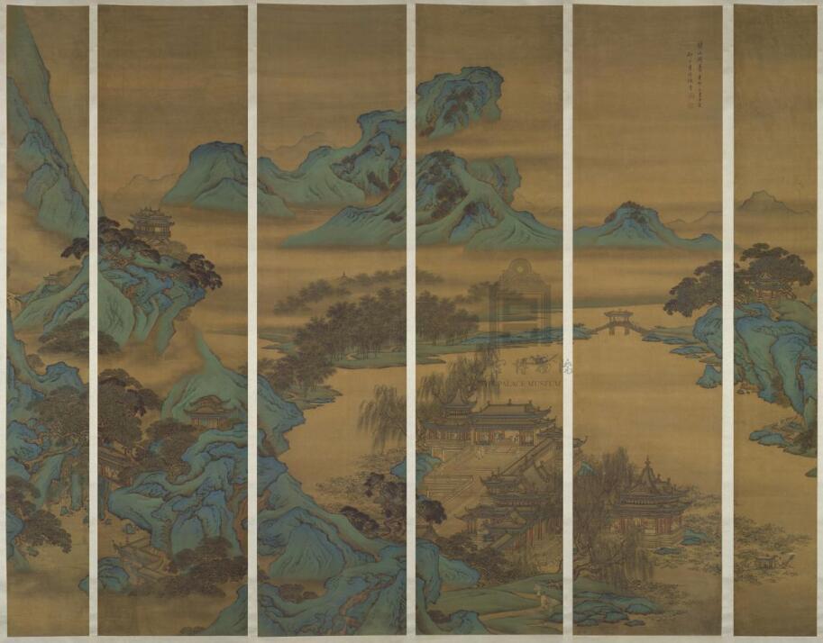 袁耀(清)《驪山避暑圖》屏 絹本設(shè)色 237×31.7cm 237×57.4cm