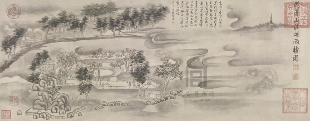 乾隆帝(清)《避暑山莊煙雨樓圖》 紙本墨筆 38.7×99.2cm