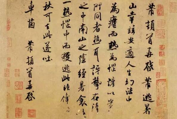 常言道:“三十六計走為上。”北宋書畫家米芾在炎炎夏日果斷外出,并書《逃暑帖》:“芾頓首再啟。芾逃暑山,幸茲安適。人生幻法,中□為虐而熱而惱。諺以貴□所同者熱耳。訝摯在清□之中,南山之陰。經(jīng)暑衾□一熱惱中而獲逃,此非幸□。秋可去此,遂吐車茵。芾頓首再啟。”此帖疑為致章惇書札,共有8個字剝?nèi)ゲ荒鼙孀R,但尚能辨其文意,大概指米芾因暑熱而逃暑于山,幸茲安適。