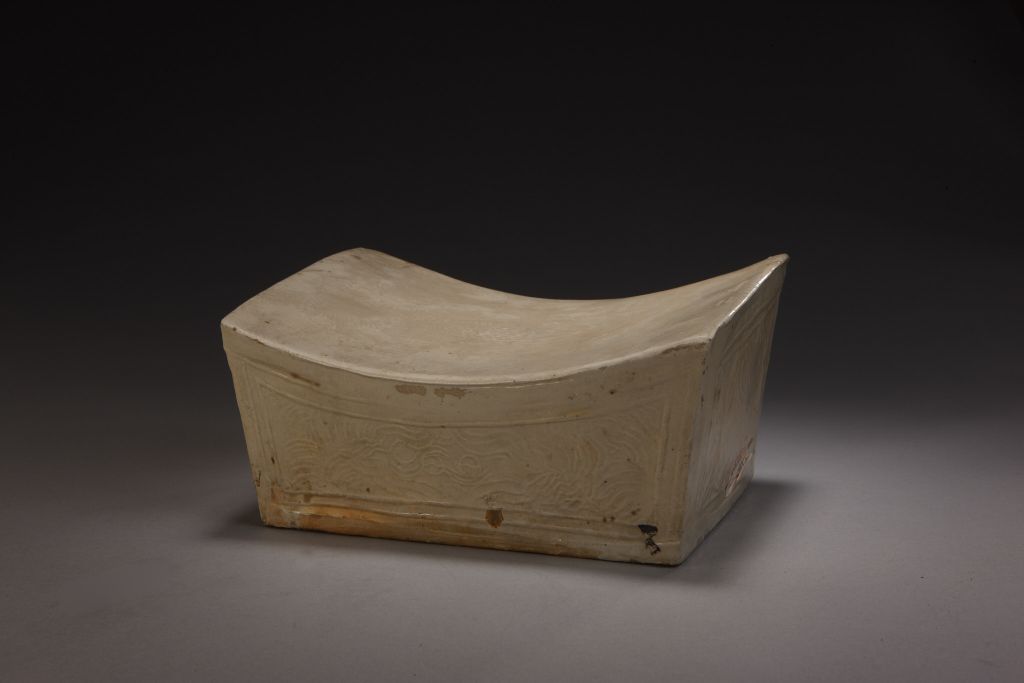 白釉剔花花鳥紋枕
