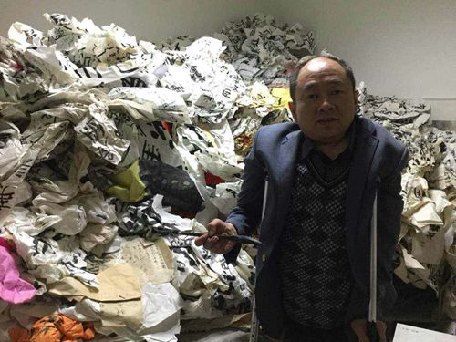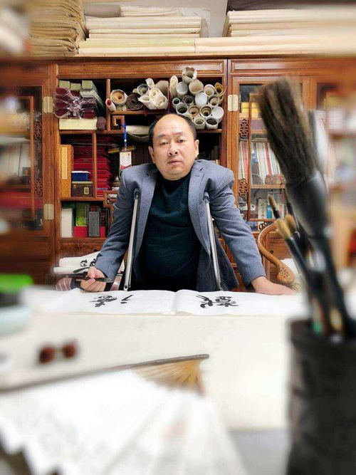 熱心助人的倪進祥老師看到身高不過一米六架著雙拐毅守人生信念的楊峰時大為震撼,立馬手書四個大字“與俗決裂”送與他,并承諾等楊峰加入中國書法家協(xié)會后再來給他換掉。