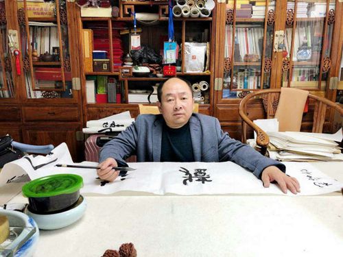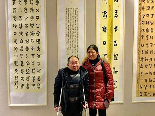 中國黃淮網(wǎng)(宋梅)【書法家簡介】楊峰,殘疾人書法家,號:勁草堂主人,1974年生,安徽省定遠人,因患小兒麻痹后遺癥,下肢癱瘓,依靠雙拐行走,F(xiàn)在定遠創(chuàng)辦楊峰書法藝術(shù)培訓中心。自幼得益于家學,酷愛書法。先隨祖父習文臨帖,后受教于鄉(xiāng)賢楊家章先生,并轉(zhuǎn)益多師,受到中國當代書法名家倪進祥、王友誼,張繼,等名家的悉心指點。學書摹帖初識顏真卿《勤禮碑》等唐碑,再接三代鐘鼎轉(zhuǎn)籀,尤得力于毛公鼎及西周《散氏盤》銘文。書法創(chuàng)作上,以大篆為主,兼攻章草。尤喜平復帖,在繼承傳統(tǒng)的基礎(chǔ)上,逐漸形成了用筆簡約.空靈.氣息高古的藝術(shù)風格。