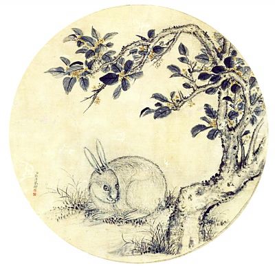 月中桂兔圖(中國畫·局部)蔣溥(清代) 故宮博物院藏