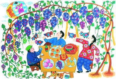 下仲秋賞月(農(nóng)民畫) 呂言 呂金昱