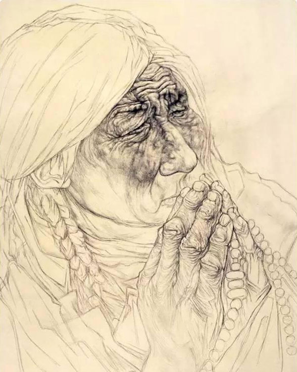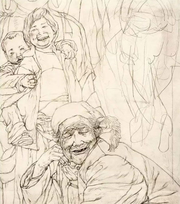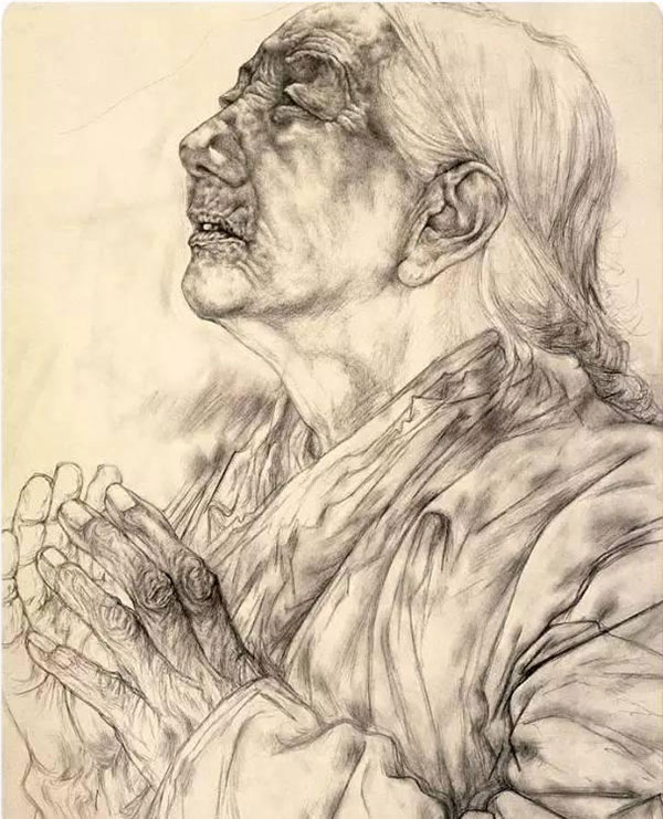 在現(xiàn)代中國畫造型基礎(chǔ)學習中,線性素描的創(chuàng)作發(fā)展有了非常本土化、風格化的面貌特征。這是一種獨屬于中國畫審美范疇的素描,強調(diào)線條的語言表現(xiàn)力和藝術(shù)家的情感表達,與“西式”線性素描殊途同歸,都表現(xiàn)了所描述對象的深層次情感,即使沒有豐富的色彩加持,依然生動感人。