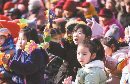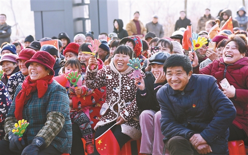 當(dāng)天上午,室外凜冽的寒風(fēng),也沒有擋住村民觀看演出的熱情。不僅是張場村的群眾反響熱烈,周圍村莊的居民也都聚集到張場村觀看演出。來自塔山鎮(zhèn)東下莊村的村民伊雪影得知當(dāng)天演出的消息特地拉著幾位好伙伴前來觀看,她說:“節(jié)目非常精彩,這是帶給我們的文化大餐。尤其這些年都在講精準(zhǔn)扶貧,這種文藝演出就是文化扶貧、精神扶貧,希望這種演出能經(jīng)常在我們這開展。”