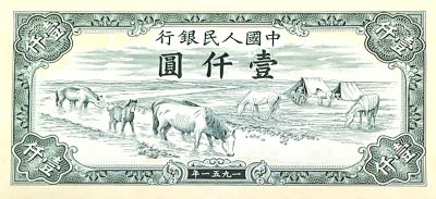第一套人民幣壹仟圓券(馬飲水)設(shè)計(jì)稿