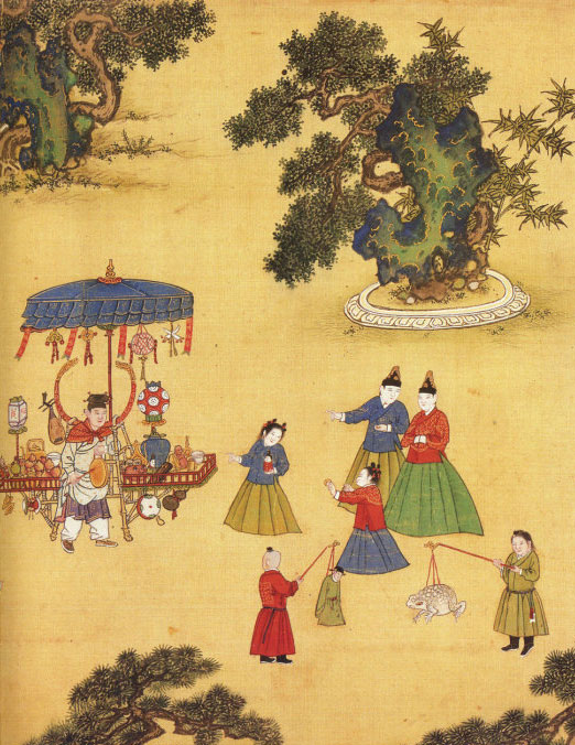 元宵節(jié)這天,憲宗朱見深下令要在宮中隆重慶祝,皇宮內(nèi)外張燈結(jié)彩,熱鬧非凡,上至王宮大臣,下至宮女侍衛(wèi),人人都穿著喜慶服飾,為了增加節(jié)日氣氛,宮廷還特意請來了雜技班子,身著盛裝的憲宗皇帝坐在大殿前,觀看臺下各種雜技表演:有鉆圈、爬桿、倒立等,令人目不暇接。還有專門請來的貨郎攤子,售賣各種花燈、玩意兒。當(dāng)然,元宵節(jié)最主要的娛樂項(xiàng)目是賞燈,皇宮里各種特制的燈飾,琳瑯滿目、精美絕倫,讓人眼花繚亂。