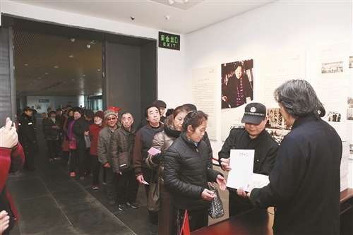 徐州美術館的人員現(xiàn)場也給老人許了一個福利:以后若遇到這樣的活動,老先生便可享受“綠色通道”,不用再排隊等待了。