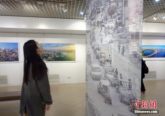 3月12日,喜迎新中國(guó)成立70周年——全國(guó)主流媒體“航拍中國(guó)”攝影圖片展在北京航空航天大學(xué)藝術(shù)館開(kāi)幕。圖為展出作品《福建解放大橋兩岸新貌》:2018年7月20日,無(wú)人機(jī)航拍福州市解放大橋兩岸新貌。中新社發(fā) 楊婀娜 攝