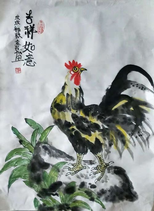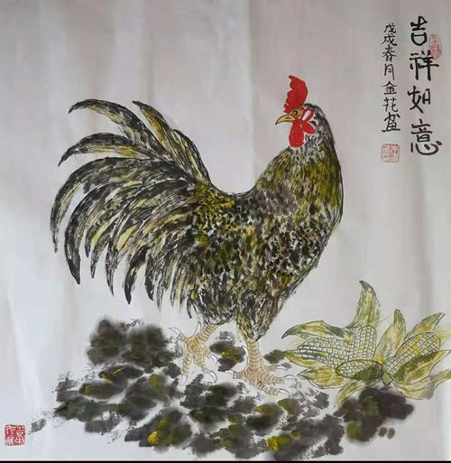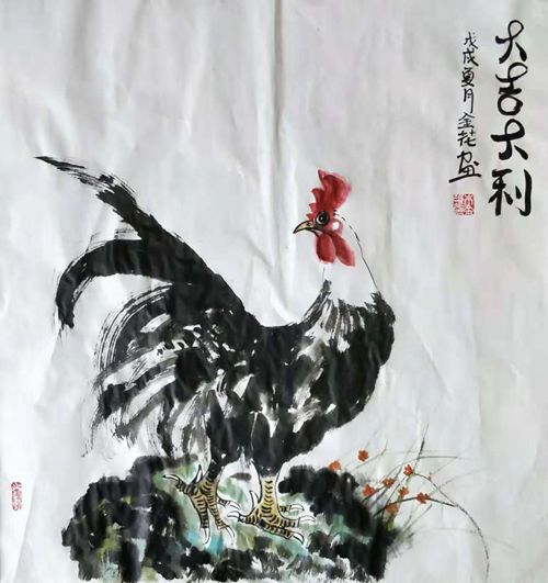 近年來,朱金花刻苦學習,遍臨名家國畫作品,從中吸取藝術營養(yǎng),國畫的繪畫技藝進步明顯。特別對動物大公雞題材描摹不止,創(chuàng)作大雞圖,新作頗豐值得稱道。
