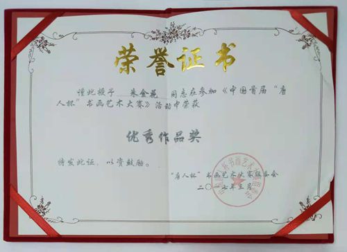 2017年3月榮獲《中國首屆“唐人杯”書畫藝術大賽》優(yōu)秀作品獎。