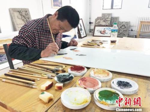 近日,甘肅瓷板畫藝人王清路在工作室里進(jìn)行創(chuàng)作。 徐雪 攝