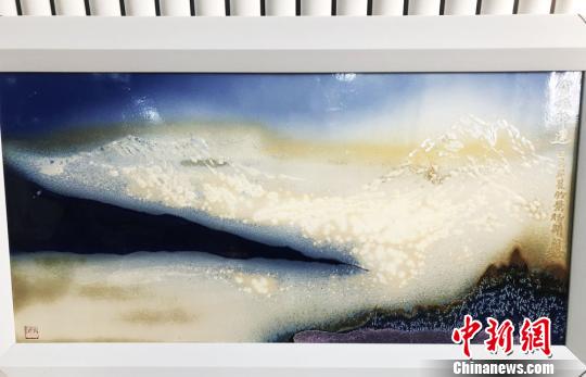 圖為主題為祁連山的瓷板畫作品。 徐雪 攝