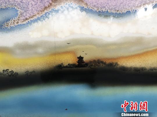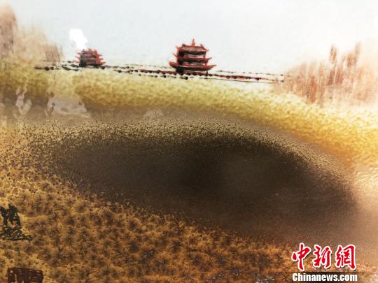 圖為以月牙泉為主題的瓷板畫作品。 徐雪 攝
