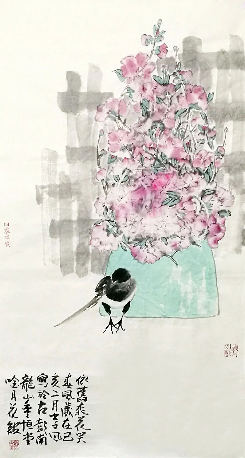 老頑童們雖然又長(zhǎng)了一歲,但是畫畫的春心依然蕩漾。這不,第一回還沒撤下,第二回又上來(lái)了,因?yàn)樾熘萑顺Q,這里沒有春天,一不小心春天就從眼皮子底下溜過去了,畫家們不負(fù)春光,發(fā)自內(nèi)心,行于自覺,並起了個(gè)看似很老的題目叫“春暖花開/中國(guó)畫名家邀請(qǐng)展(第二回)”,希望歲歲有今朝,年年看花開。