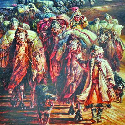 駝鈴響過毛烏素(油畫) 白亞林