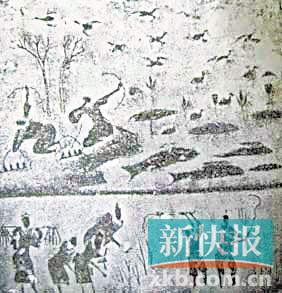 有關(guān)“耕織圖”的歷史源遠(yuǎn)流長(zhǎng),最早可以追溯到戰(zhàn)國(guó)時(shí)期出現(xiàn)單一采桑圖像的青銅器上。而勞動(dòng)場(chǎng)景題材,在后來漢代的畫像石畫像磚里則較為常見,四川畫像磚是一個(gè)代表,絕大部分刻畫現(xiàn)實(shí)生活,除了有表現(xiàn)墓主生前社會(huì)地位的車馬出行、經(jīng)師講學(xué)、宴舞等場(chǎng)景外,還有若干反映封建莊園的農(nóng)業(yè)生活畫面,其中值得一說的有《弋射收獲圖》,該圖畫面分成上下兩部分:上部弋射圖,右為蓮池,池內(nèi)浮著蓮葉,水中有魚鴨遨游,空中有大雁飛行。下部為收獲圖,畫面描繪六農(nóng)夫面朝右方,三人彎腰收割,最左邊一人挑擔(dān)前行,右邊兩人相互顧盼用力揮舞農(nóng)具。
