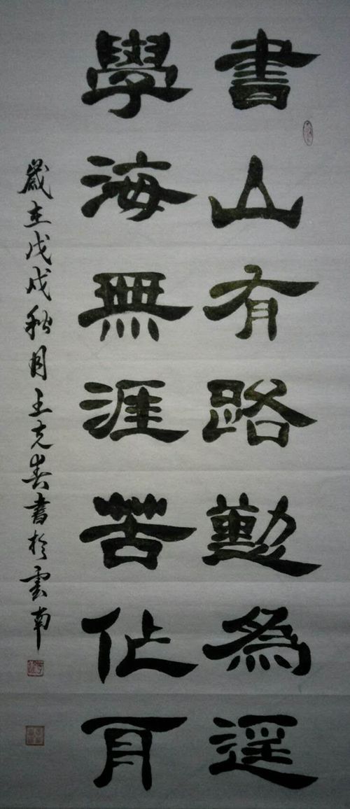 王克春自幼喜歡練字,在初、高中曾多次參加硬筆、毛筆書(shū)法比賽獲得一等獎(jiǎng)。畢業(yè)后,1998年在家鄉(xiāng)務(wù)農(nóng),2002年外出打工謀生。在閑暇時(shí)光酷愛(ài)書(shū)法,但沒(méi)有導(dǎo)師的指點(diǎn),自行苦練,善于楷、行、隸三種書(shū)法。