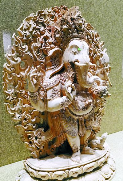 它位于國家圖書館“文明匠心——亞洲非遺大展”的入口處,既形同張開懷抱迎接來訪者,又若指引眾人深入展廳探尋亞洲文明的路徑,去尋找分布在展廳中的泰國的五彩瓷杯、尼泊爾的木雕、土耳其的瓷器、斯里蘭卡的木偶和面具、越南的漆器、馬來西亞的藤編、印尼的皮影、伊朗的銀器,以及器物和匠心背面的東西……