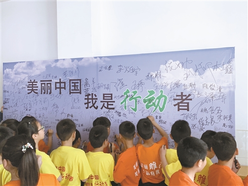 活動現(xiàn)場,小學(xué)生在生態(tài)宣言簽名墻上進(jìn)行簽名。睢寧縣第四實(shí)驗(yàn)小學(xué)小學(xué)生周馨語說:“我要用手中的畫筆,描繪美麗的家鄉(xiāng)藍(lán)天、碧水、綠地,同時將從自身做起,保護(hù)好環(huán)境,愛護(hù)綠色植物,不亂扔垃圾,讓睢寧變得更美麗。 |