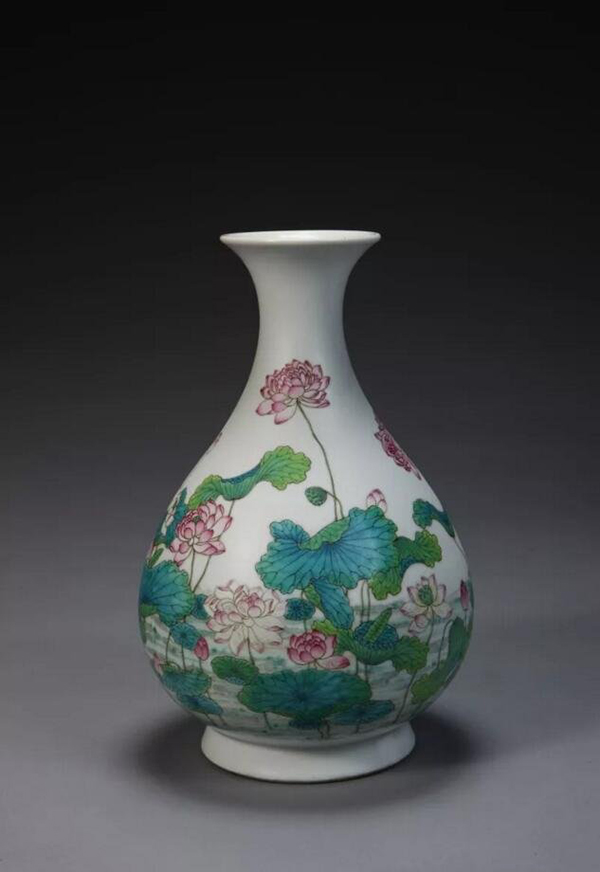 清雍正粉彩荷蓮紋玉壺春瓶,現(xiàn)藏故宮博物院