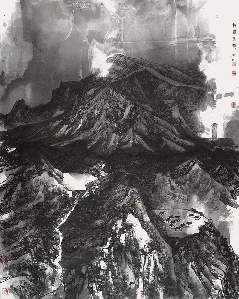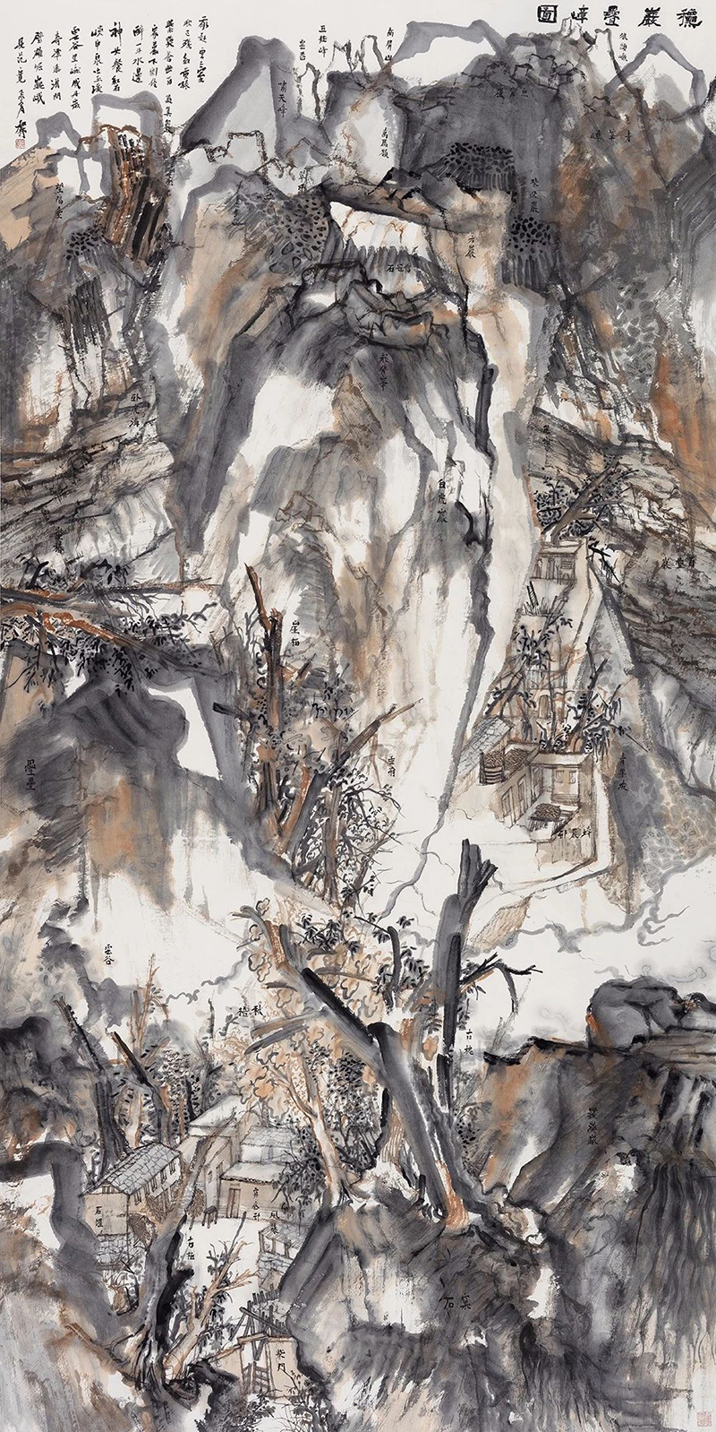 王保安 大奇華山180cm×582cm 紙本水墨 2019年