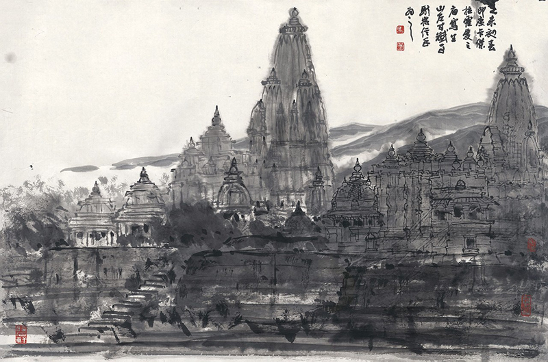 黃唯理 菩薩頂·五臺山寫生56cm×42cm 紙本設色 2015年