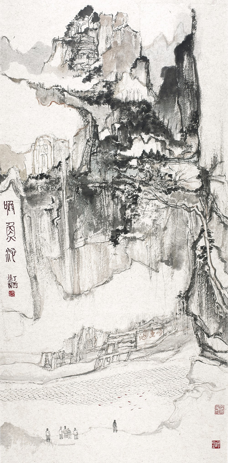 楊正國 巴蜀記游組畫-喚魚池白云寺