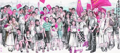 不忘初心,堅持“一國兩制”,香港的未來一定更美好(油畫)徐里、譚乃麟