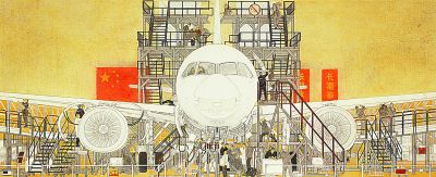 中國制造走向世界——C919大飛機(中國畫) 范春曉