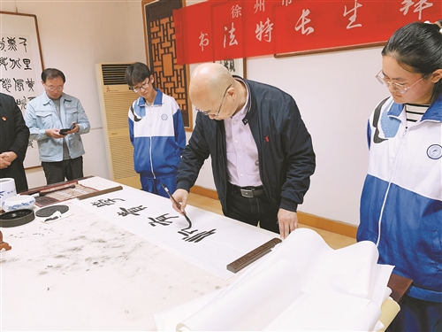 徐州日報訊(全媒體記者 甘曉妹)向老師敬茶、現(xiàn)場展示書法作品……11月4日上午,一場傳統(tǒng)拜師儀式在徐州市三十六中的校園內(nèi)舉行。現(xiàn)場,該校的書法特長生呂冠延、扈維晨畢恭畢敬地完成了拜師禮,正式成為江蘇省書法協(xié)會副主席、南京財經(jīng)大學(xué)中國書畫藝術(shù)研究所所長仇高馳教授的入室弟子。拜師禮后,仇高馳教授欣然提筆,為徐州市三十六中的師生們寫下“學(xué)貴有恒”四個大字。